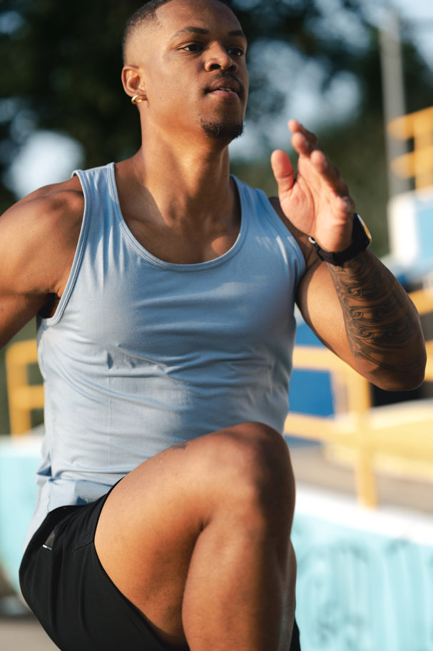 Made from our premium bamboo blend, this tank delivers lightweight breathability with a looser torso fit for enhanced airflow and a tailored cut in the shoulders and arms for a sharp, athletic silhouette. We added length for extra sun coverage, plus built-in UV protection to shield you from harmful rays. Advanced moisture-wicking technology pulls sweat away from your skin, while natural odor resistance keeps you feeling fresh no matter how hard you push.